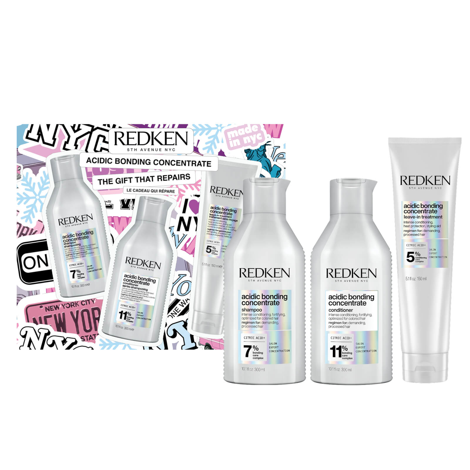 Redken Acidic Bonding Concentrate Gift Set with shampoo, conditioner & treatment